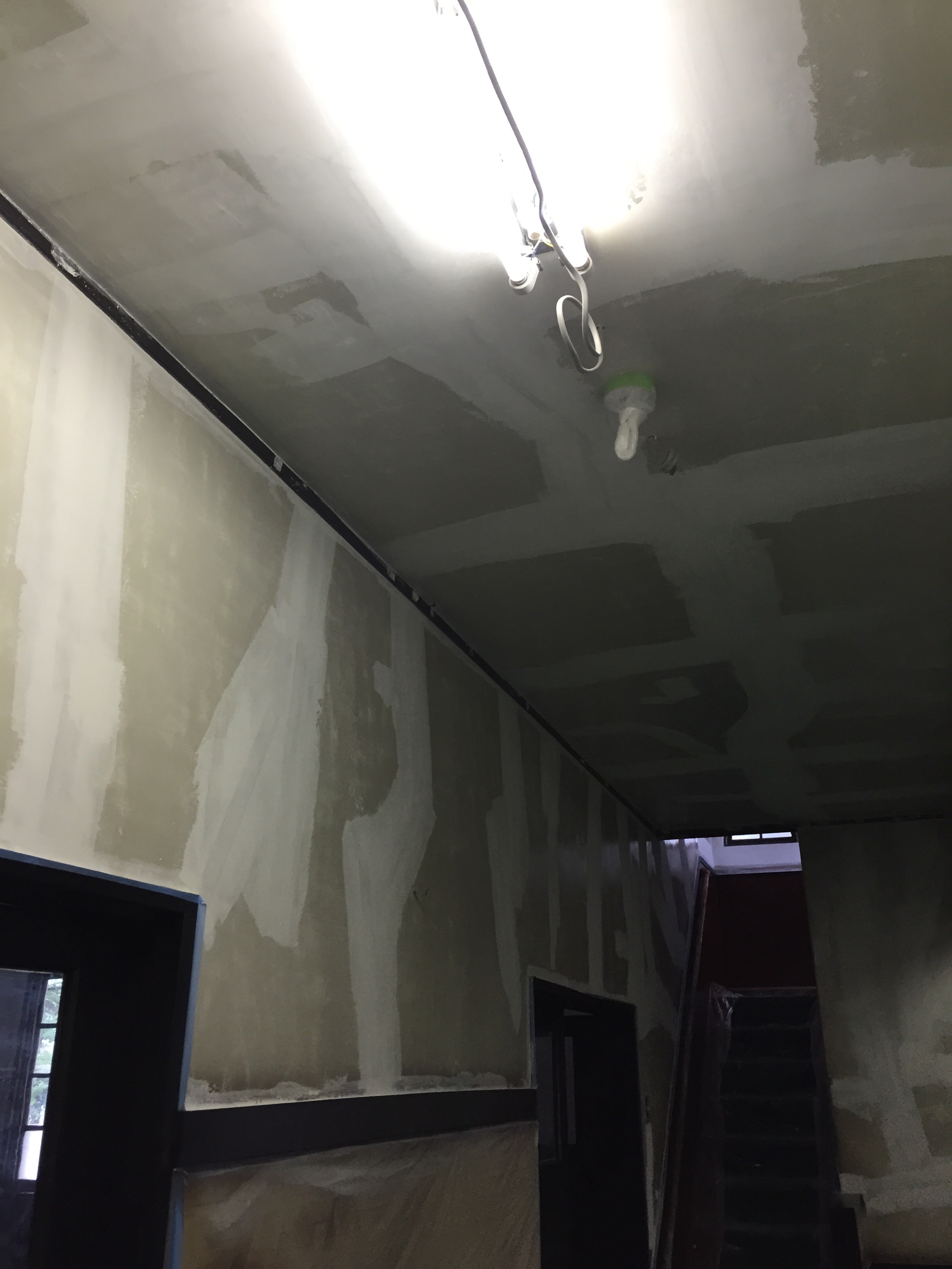 O幼稚園様 引き続き、各所新規、既存建具枠のオイルステイン着色及び天井、壁の下地調整など作業いたしました。建具などは倉庫に持ち帰り塗装いたます。 全面塗装は各所取り合いが多く進めていく手順にも気を遣いますが、頑張って作業すすめていきたいと思います。( ̄^ ̄)ゞ 2015年9月4日(金) 18:52 | カテゴリー:現場レポート