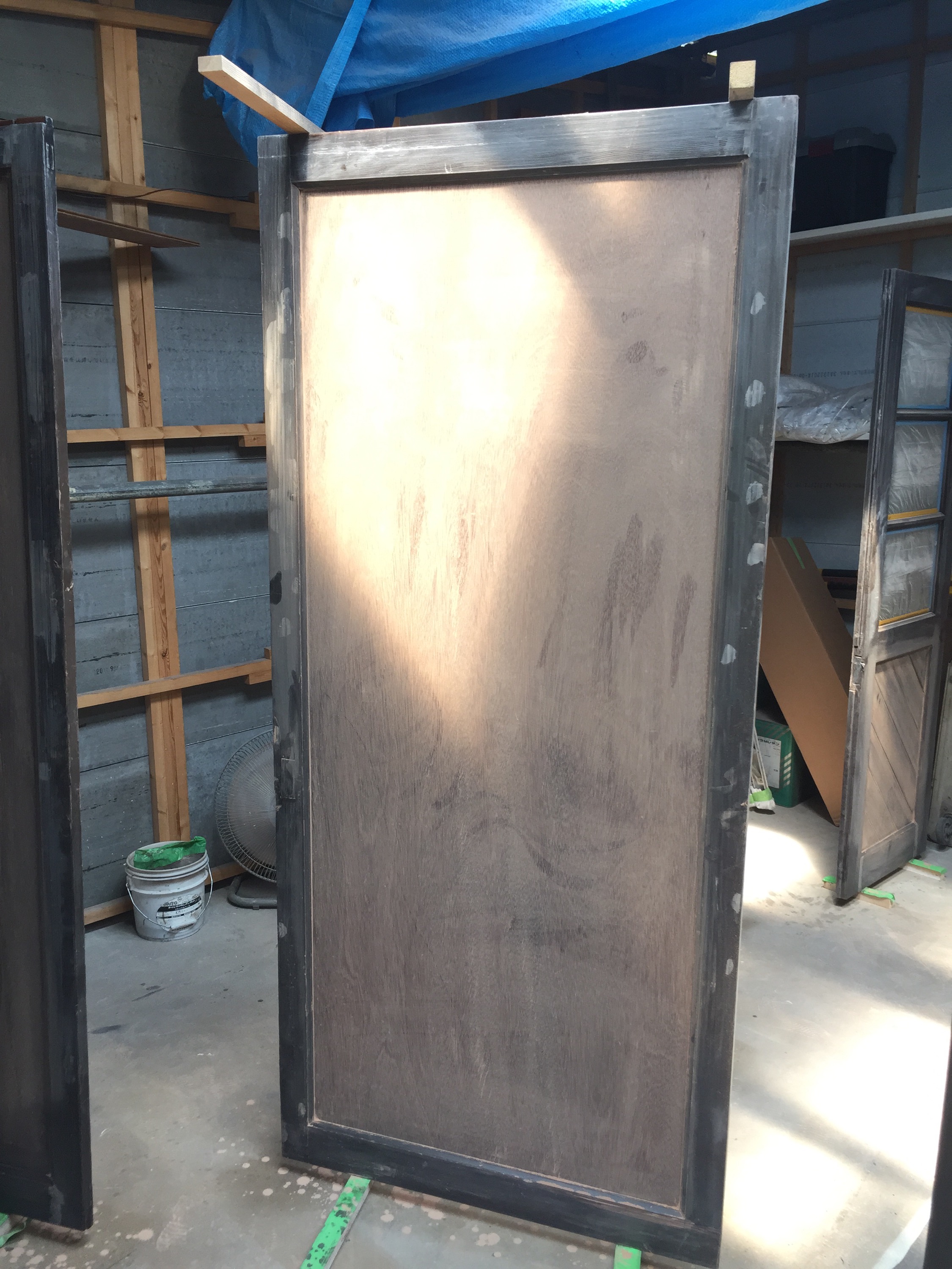 建具塗装 倉庫で建具塗装(OSCL塗装)してます。1回目のサンディングシーラーを塗装してから水で溶かしたとのこを刷毛で塗り画びょうなどのピン穴を目止め作業します。拭き取り後2回目のサンディングシーラーで中塗りです。 コレで穴埋め完了デス。 2015年8月1日(土) 15:00 | カテゴリー:現場レポート