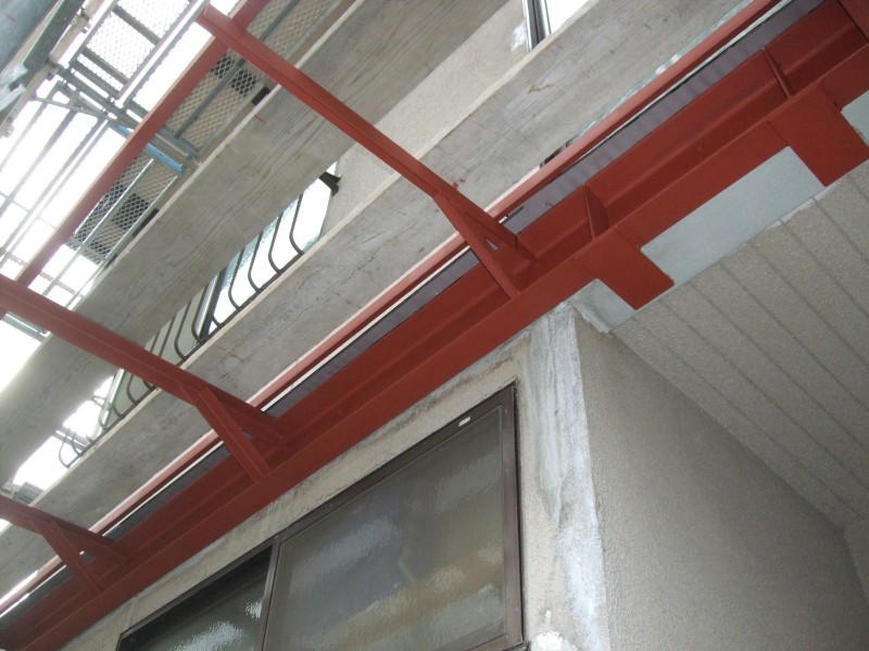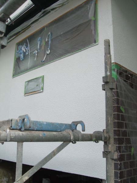 近隣住宅密集地でしたので外壁高圧洗浄は、御迷惑お掛けしますので浸透性カチオンシーラー処理を行い各所クラック処理・可とう形弾性改修塗材(関西ペイントアレスホルダー防水形厚膜仕様)多孔質ローラー波形模様中塗り・水性反応硬化型樹脂コスモシリコントップコートを2回塗り、破風・木部全般ウレタン樹脂塗装・鉄部下地清掃錆止め+ウレタン樹脂塗装・波板張替え施工させていただきました。