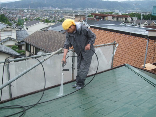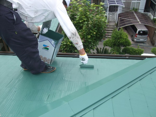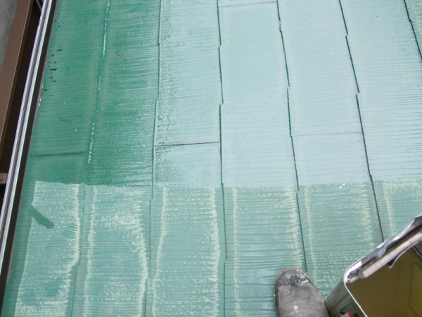 カラーベストの屋根は元の色と同じ鮮やかなグリーン