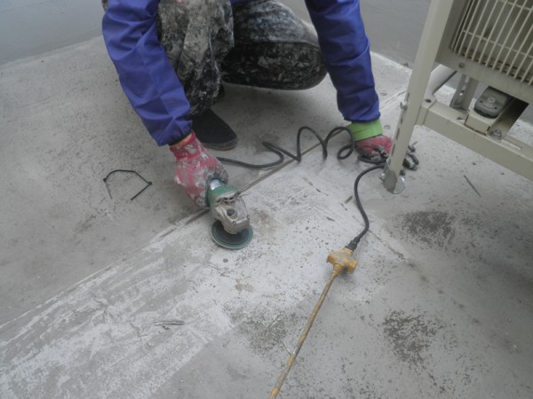 施工前には必ず、モルタルの表面を丁寧に削り、汚れや旧塗膜を残らず除去します。