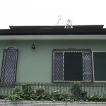 元は白い壁だったお家をお客様のご要望で美しい緑に。屋根と雨戸も一緒に塗り替えてすっきり爽やか。